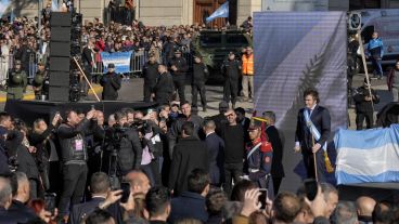 A las 10.30 se hizo la jura a la bandera y Milei subió al escenario aclamado por los suyos. Ponderó a Belgrano como “un maximalista de la libertad” y también rescató su rebeldía al crear la bandera en Rosario en 1812 pese a la oposición de Buenos Aires. “La libertad no pide permiso, no se esperan a las órdenes de ningún burócrata”, comparó.