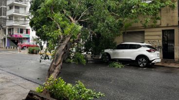 Uno de los casos se reportó en la esquina de Urquiza y Balcarce donde un ficus se cayó en medio de la abundante lluvia y no provocó más que algunos daños menores ya que quedó apoyado sobre los cables del alumbrado público.