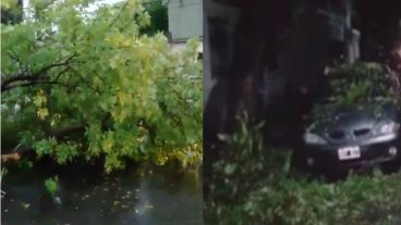 La tormenta que cruza la ciudad este viernes a la mañana y que lleva acumulado un promedio de 65 milímetros de agua caídos, provocó el derrumbe de unos 20 árboles y ramas, dos de esos casos tuvieron consecuencias mayores. De acuerdo a lo que informaron desde Radiópolis (Radio 2) y Antes de Salir (El Tres), un gran ejemplar se desprendió de raíz en Moreno y Catamarca y se precipitó sobre dos autos estacionados, ambos marca Renault. El primero sufrió lesiones menores pero el otro de los coches quedó con el techo y el parabrisas destruidos.