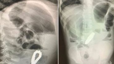 Un pequeño de 4 años fue llevado al hospital por agudos dolores abdominales. Sus padres dijeron que el niño había estado mal durante dos días y que había estado vomitando y estreñido. Creyeron que se trataba de apendicitis pero en realidad se había tragado un objeto.