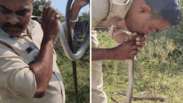 Un policía del estado de Madhya Pradesh, India, fue alertado sobre una serpiente que estaba inconsciente luego de haberse expuesto a agua con pesticidas. El efectivo, llamado Atul Sharma, acudió al lugar y le hizo respiración boca a boca y logró salvarle la vida.