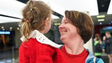 Larisa Shaforostova y su hija Sofía, de 4 años. Ambas, junto a Illia, de 16, "llegaron sanos y salvos a la Argentina. Aquí los esperaba parte de su familia y del equipo de Amnistía Internacional, quienes les dieron una cálida bienvenida", informó la organización humanitaria en un comunicado.