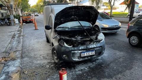En Buenos Aires y 27 de Febrero, un utilitario se incendió esta mañana por aparentes problemas en la batería, según aventuró el dueño del vehículo, Ariel, a El Tres.