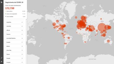 El sitio se puso online este domingo y se puede acceder a través de www.bing.com/covid. La herramienta creada por Microsoft permite seguir la evolución de la pandemia país por país.