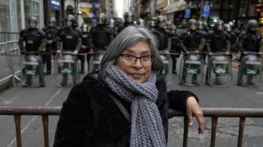 El primero en cruzar Rioja y Corrientes es Del Frade. El periodista, escritor y legislador del Frente Amplio por la Soberanía intenta un diálogo con la Policía. Pero no tiene interlocutores de este lado de la valla, salvo la mujer agente que antes le decía a todo el mundo que no podían pasar por la amenaza de bomba.