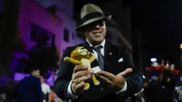 Banderas amarillas con la cabeza del león y consignas a favor de Milei, era lo que más se podía divisar entre la muchedumbre.