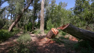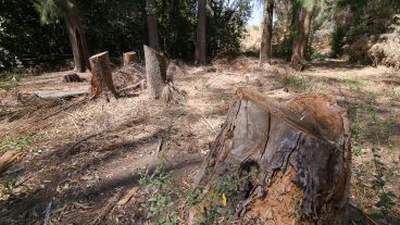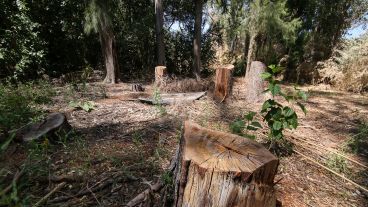 Pero el saqueo no termina allí. En los últimos tiempos, son los árboles las víctimas de la depredación. Decenas de cipreseses y eucaliptos que fueron cortados con motosierras y cargados en camiones, cuyo destino acaso sea convertirse en leña para panadería. Quienes circulan por la zona dicen que el movimiento es permanente. Rosario3 y El Tres recorrieron el lugar, y no solo se veían los árboles cortados, sino también, tiradas juntos a los restos de los que fueron ejemplares añosos, las botellas de aceite del motor dos tiempo de las motosierras y basurales con restos de los almuerzos de quienes hacen ese trabajo.