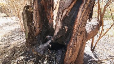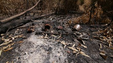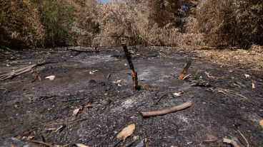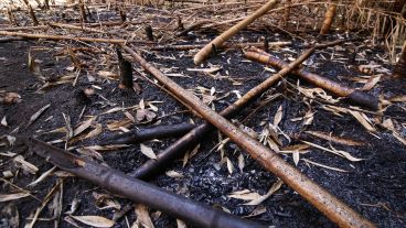 El daño ambiental incluye también la quema de enormes sectores de cañas de bambú. En la zona explican que las incendian para espantar a los pájaros y proteger así los campos de soja y quintas que rodean el Monte Caballero.