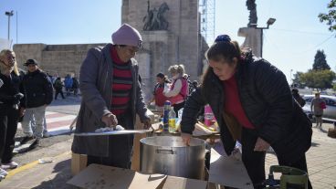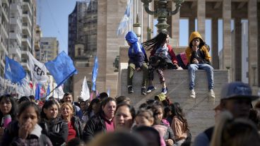 El Monumento a la Bandera se convirtió este mediodía en el escenario de protesta y reclamo de trabajo de parte de organizaciones sociales que, en el marco de la celebración religiosa del Día de San Cayetano, se congregaron y movilizaron.