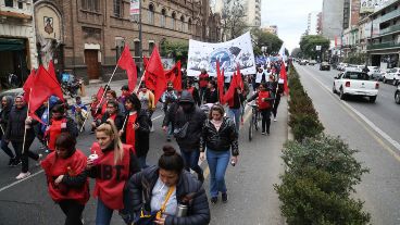 El Polo Obrero de Rosario y otras agrupaciones se sumaron a la jornada nacional de lucha de las organizaciones piqueteras y se movilizan por el centro de la ciudad. A media mañana, los manifestantes se reunieron en la zona de Oroño y Pellegrini para empezar a marchar por Pellegrini hacia el Monumento Nacional a la Bandera.