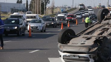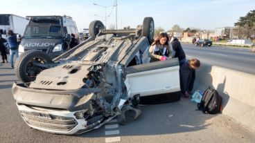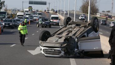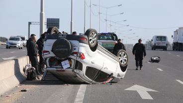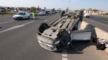 Una familia que viajaba en su auto por avenida Circunvalación sufrió un espectacular accidente cuando una de las ruedas se desprendió y el coche volcó. Nadie resultó herido. Más temprano, un motociclista chocó contra un auto y tuvo que ser hospitalizado.
