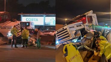 Por otro lado, Larramendi explicó que el accidente se produjo cuando el camión circulaba por el carril de baja velocidad y se le cruzó un auto Toyota Corolla, que quedó totalmente aplastado.