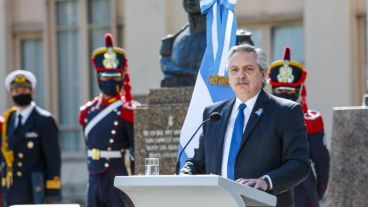 El presidente Alberto Fernández encabezó este lunes el acto por el 170° aniversario de la muerte del general José de San Martín y aseguró que hoy, el desafío es reactivar la economía y conseguir una vacuna contra el coronavirus con la que no se lucre.