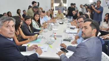 La reunión paritaria en Santa Fe estuvo integrada por los ministros de Educación, José Goity, de Economía, Pablo Olivares, y de Trabajo, Roald Báscolo, reunidos con los representantes gremiales de Amsafe, Sadop, Amet y UDA.