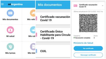 Por empezar, hay tres formas de obtener el certificado de vacunación, a través de la página web oficial Mi Argentina, a través de página oficial del gobierno provincial en la pestaña Pase sanitario (que redirecciona a Mi Argentina) o a través de la aplicación Mi Argentina en el celular.