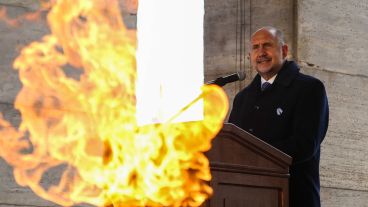 En un acto marcado por la pandemia de coronavirus y tras el saludo a las y los presentes, el gobernador Omar Perotti comenzó su discurso por el Día de la Bandera de este domingo con una reseña histórica de los hechos que llevaron a la creación de la enseña patria y la lucha por la independencia encabezada por el general Manuel Belgrano.