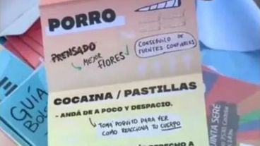 El que despertó la polémica fue un tríptico sobre drogas, que buscaba orientar a los jóvenes hacia un consumo responsable. "Si vas a consumir, acordate de estos consejos", se lee en la primera página. Luego hace referencia puntualmente a la cocaína y las pastillas -como éxtasis y otras drogas sintéticas- y se aconseja “ir de a poco y despacito”.