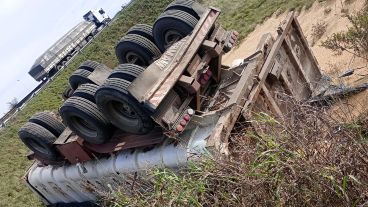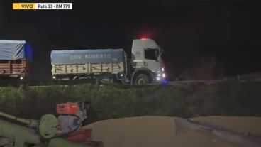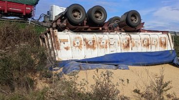 Este viernes por la tarde, volcó un camión que intentaba subir a la A012 desde la Ruta Nacional 33, su acoplado cargado con soja separó del chasis producto de los pozos del camino y de milagro no chocó a los que venían atrás.