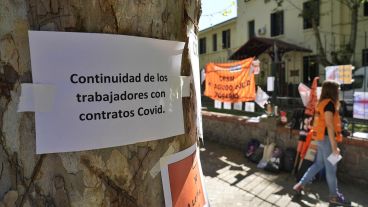 “Hay 4 mil contratos Covid en la provincia, pedimos el pase a planta”, advirtió una trabajadora en la protesta.