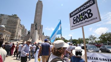 Productores agropecuarios de la región realizaron este viernes un tractorazo contra el aumento de las retenciones a las exportaciones que incluyó un recorrido por las rutas y un acto central en el Monumento a la Bandera, donde hubo un incidente.