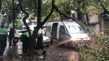 La tormenta que envuelve la ciudad este sábado ya causó algunas complicaciones. Casi como una postal de cada fenómeno de este tipo, se contaron árboles y postes caídos y calles convertidas en lagunas.