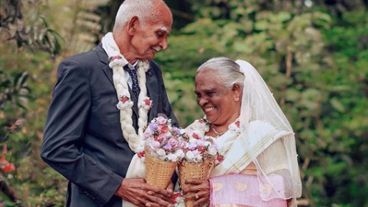En India, una pareja confesó que se conocieron y tras una simple charla de 30 minutos decidieron casarse. El matrimonio 58 años después sigue unido y realizaron una nueva sesión de fotos como en el día que se casaron.