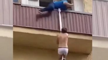 Un hombre vestido solamente con un calzoncillo escapó por el balcón de un departamento colgando de una sábana cuando llegó el marido de su amante y descubrió la infidelidad. El escape de película quedó registrado y se hizo viral.