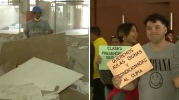 En cuanto a la modalidad de trabajo que vienen sosteniendo desde hace 15 días, explicaron que los chicos y chicas asisten "una vez a la semana para entregar un trabajo y se quedan media hora" en los salones. "Es imposible que esto se termine rápido", lamentó el hombre.