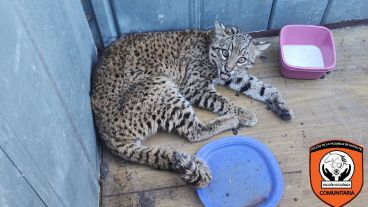 La Policía Ecológica rescató este lunes a un gato montés en una casa de Los Nogales, una localidad a una hora y media de Rosario. El hombre lo tenía dijo que lo encontró lastimado cerca de la ruta. Estaba herido en sus patas y con bajo peso.