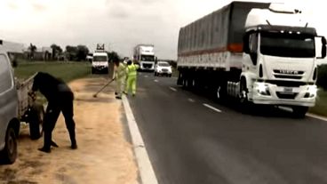 Un operativo de limpieza y ordenamiento se desplegó en la zona para poder despejar la ruta de la carga desperdigada. Por unas horas la circulación estuvo reducida a un carril.
