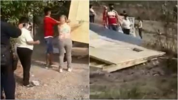 Un grupo de vecinos del barrio Nuestra Señora del Carmen, en la zona oeste de la ciudad de Salta, derribaron una casa prefabricada para evitar que una familia usurpe la plaza del barrio.