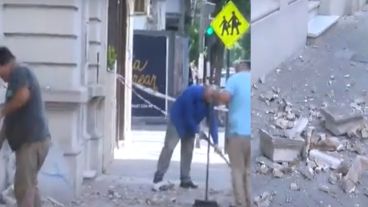 Los cascotes se desmoronaron desde el techo y cayeron a la vereda, en Italia al 1200. Una denuncia vecinal alertó a la Municipalidad de Rosario que intervino retirando el material que estaba flojo.