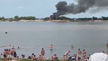 Los rosarinos que disfrutaban de una tarde de playa en la zona de La Florida y Rambla Catalunya divisaron la columna de humo enfrente y fue registrado en un video que se viralizó por Whatsapp.