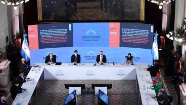El acto se llevó a cabo en el Salón de los Pasos Perdidos, en el que se implementó la tecnología y logística que habitualmente utiliza Diputados para realizar las sesiones virtuales, con el objetivo de poder cumplir con el protocolo sanitario y garantizar el normal funcionamiento del Congreso.