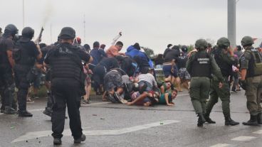 Varios operarios, que también trabajan en el rubro en la zona de Rosario, comenzaron entonces un rápido traspaso de la mercadería de un camión a otro, siempre bajo la supervisión del Senasa. Para eso, las fuerzas de seguridad debieron dispersar una vez más a manifestantes con gases y balas de goma.