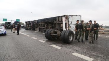 El camión rompió un eje y por eso volcó sobre el carril sur-norte de la vía nacional, en donde el tránsito quedó parcialmente reducido. La situación y la circulación comenzaron a normalizarse a partir de las 19, luego de que retiraran al vehículo siniestrado.