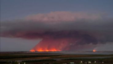 El noticiero Telenoche (El Tres) compartió imágenes aéreas del avance de las quemas y el trabajo para combatirlas.
