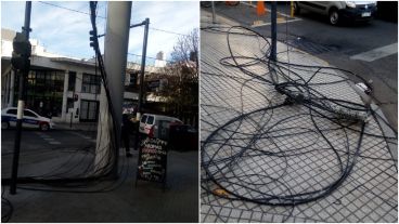 Los cables cortados y caídos en la calle correspondías a las conexiones domiciliares de Internet, cable y telefonía.