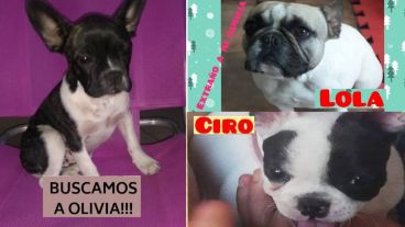 "Por nuestra parte hicimos de todo para dar a conocer por la zona la búsqueda de Olivia. Hicimos folletos, pagamos publicidad, repartimos volantes en supermercados de circunvalación y Eva Perón, pusimos también en autos y en la página de facebook Bulldog Francés Perdidos y Encontrados, donde se suben las búsquedas de todo el país", explicó.