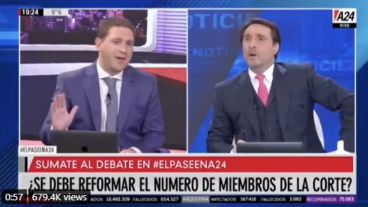 De acuerdo a lo que publicó Exitoína, Jonatan Viale y Eduardo Feinmann estaban debatiendo en El Pase de A24 sobre la reforma judicial, si debía o no aumentarse el número de miembros de la Corte Suprema. "Yo veo que están muy concentrados algunos, algunas, algunes en el tema de la justicia...", dijo Viale, a lo que inmediatamente Feinman le lanzó: "No, si me vas a hablar en idioma inclusivo me levanto y me voy". "El presidente habla así entonces tengo que hablar así", respondió el periodista con una sonrisa. "Vos sos un tipo universitario, viejo. No, el idioma es castellano en la República Argentina, no el jeringoso", agregó para luego reiterar que si continuaba con el lenguaje inclusivo se retiraba del ciclo.