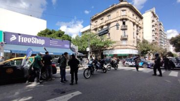 En la mañana de este jueves una taxista embistió a dos peatones que cruzaban por la esquina de Córdoba y Alvear. Producto del siniestro, un hombre quedó atrapado debajo del vehículo de alquiler y tuvo que ser rescatado por los bomberos Zapadores para luego ser atendido por el Sies.