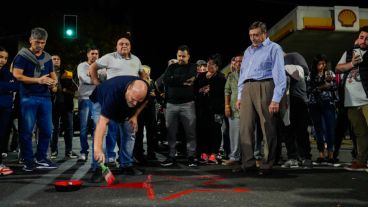 Frente a la Shell de Corrientes y 27 de Febrero, donde trabajaba Mauro, sus colegas y amigos pintaron una estrella roja en su homenaje.