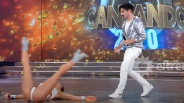 Adabel accedió. Pero la humedad de la pista a causa de la desinfección y los tacos que llevaba la bailarina le jugaron una mala pasada y terminó en el suelo.