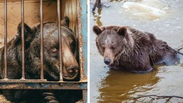 El animal permaneció 11 años encerrada en una jaula en un garaje y actuaba en circos pero, debido a la pandemia del coronavirus, su dueño ya no pudo mantenerla y la organización Four Paws logró transportarla al centro de protección de osos Arosa Barenland, en Suiza, para ofrecerle una vida mejor.