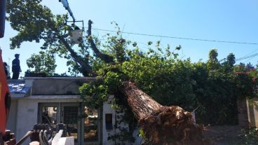 La tormenta de anoche fue feroz. La velocidad del viento llegó a 102 kilómetros por hora y marcó el récord del año. Las consecuencias fueron graves ya que más de un centenar de árboles y ramas se cayeron y causaron destrozos. Uno de estos ejemplares es un plátano de 25 metros de altura que perdió el equilibrio y se derrumbó sobre una casa en Vera Mujica al 4800.