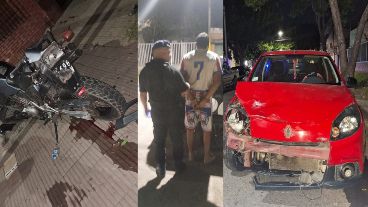Un auto Renault Sandero de color rojo embistió a una motocicleta en la intersección de Biedma y Crespo en la noche del sábado, y tras el hecho se dio a la fuga.