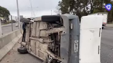 Un auto volcó sobre avenida Circunvalación, a la altura de Juan B. Justo, este martes al mediodía. El conductor del vehículo resultó herido. Personal policial y sanitario estaba en la zona, en la que se había cortado el tránsito en el carril donde quedó detenido el coche.