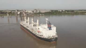 Guillermo Wade, de la Cámara de Terminales Agroexportadoras, explicó lo ocurrido en De 12 a 14, mientras el drone de El Tres mostraba desde el aire las imágenes del barco. “La maniobra no sé cuál fue, pero lo cierto es que el barco está varado, por suerte fuera del canal y no impidió el tránsito de los otros barcos”, describió.