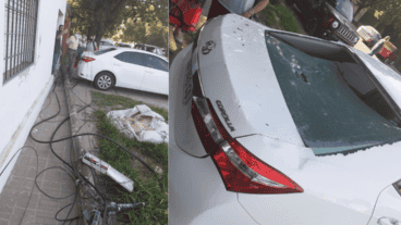 El titular del auto siguió: "Pasó un camión y se llevó puestos los cables, arrancó el poste, voló a mi auto y el cable enrolló a un chico que pasaba en moto y casi le saca la cabeza, literal. Por suerte se lo llevó la ambulancia y ya debe estar mejor. Lo mio son solo daños materiales".