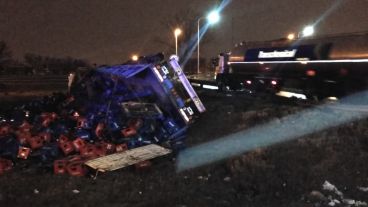 Un camión que llevaba cajones de bebidas alcohólicas sufrió un vuelco y perdió la carga en la zona de la avenida Circulación, sobre la mano sur-norte y el rulo que ingresa a la autopista Rosario-Córdoba.